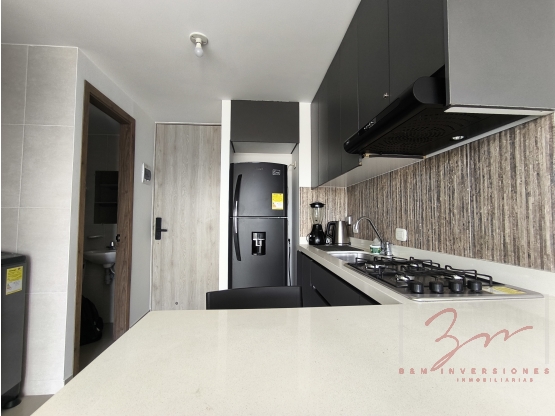 Al entrar una cocina integral moderna con barra americana, un baño social seguido de la zona de oficios, separado de la cocina, una cómoda sala con un balcón que te brinda una vista hacia la Av. 3 Norte el cual cuenta con un ventanal corredizo que aísla el ruido, al fondo la habitación de concepto semiabierto con aire acondicionado, tiene un espacio exclusivo para tu privacidad al fondo, con un baño privado que te ofrece el confort de tener separado la ducha con un vestier y al fondo el baño con su mueble. Parqueadero comunitario.